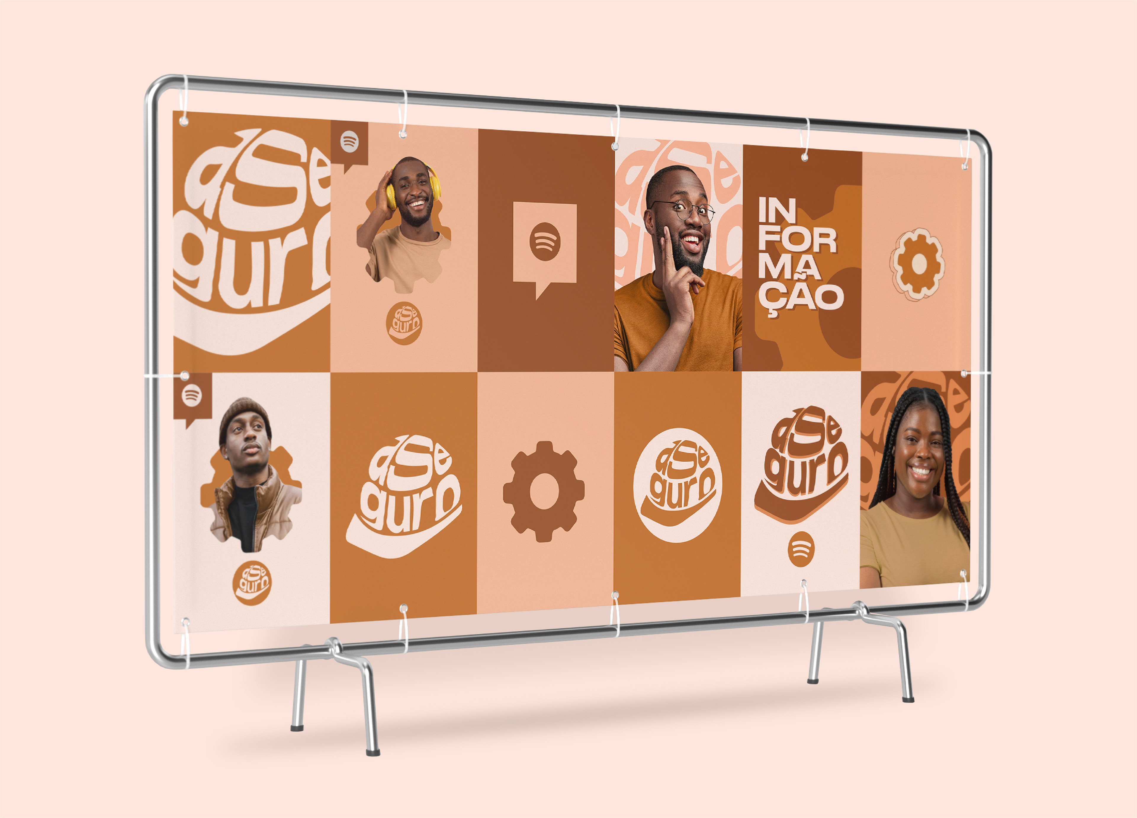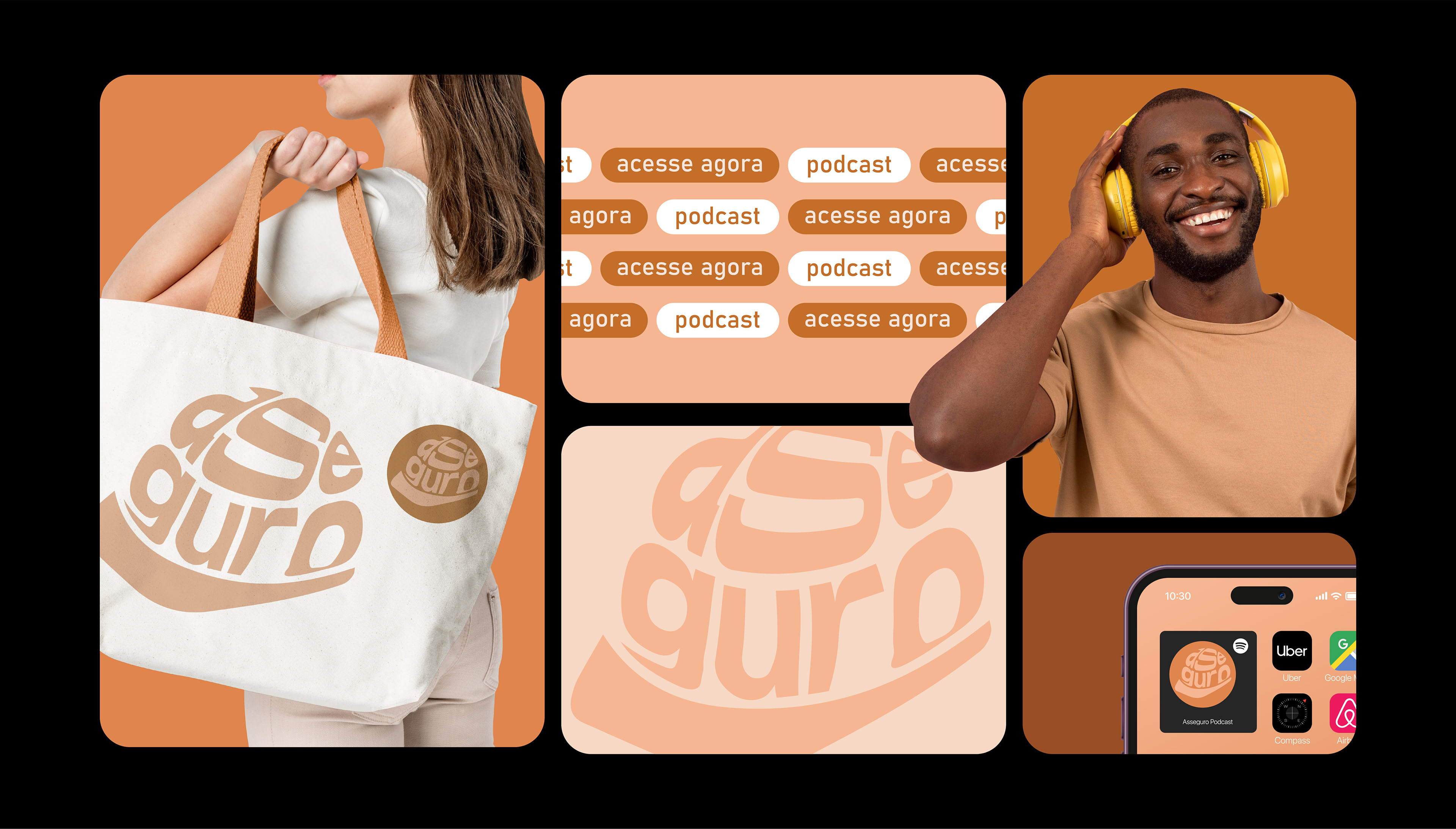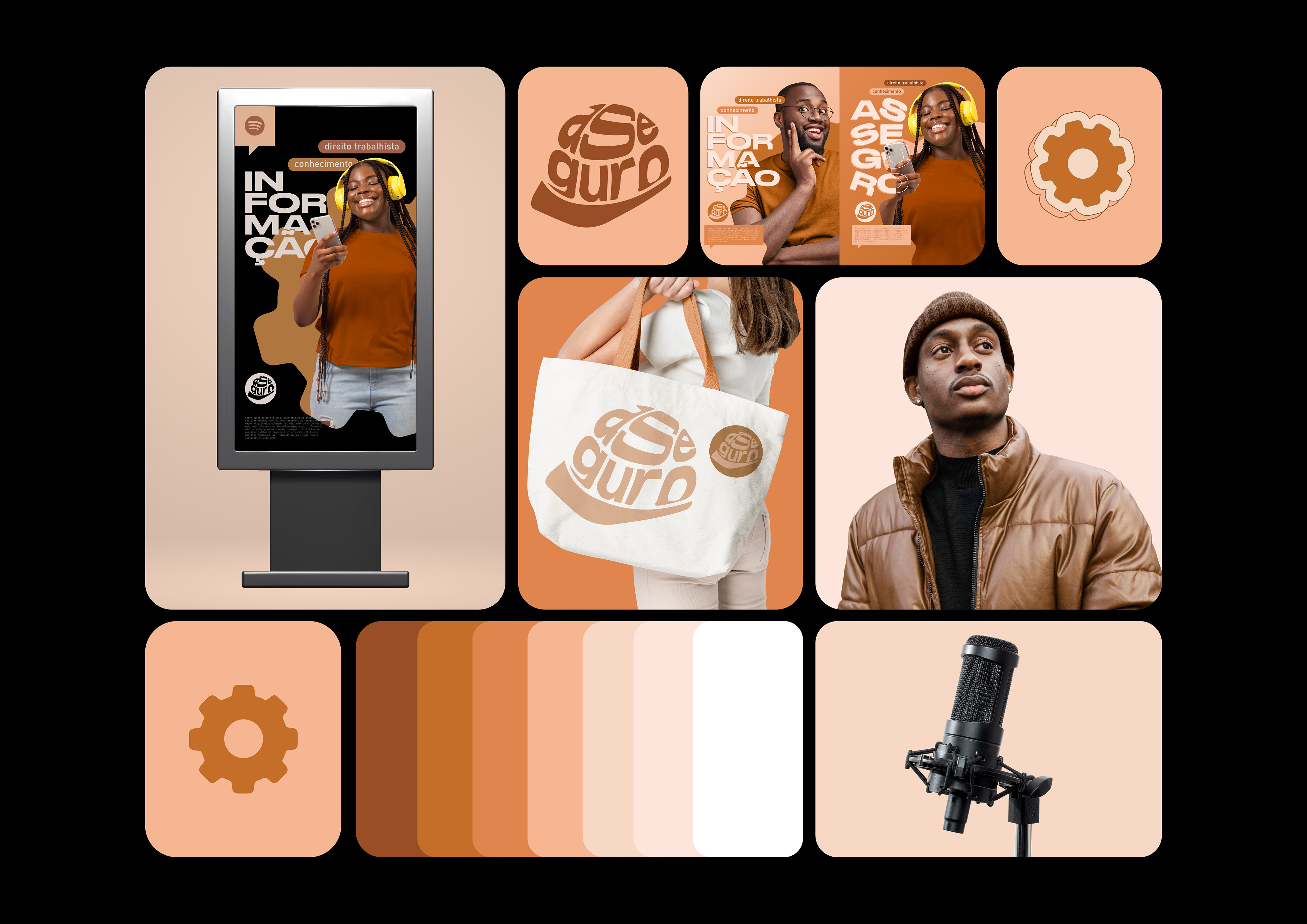 Asseguro Podcast is a concept brand. Bringing a more relaxed identity, the brand combines fun with seriousness in its color palette. Debating issues lightly but seriously, the podcast seeks to provide mentoring and knowledge about safety and the importance of labor rights. They are exclusive to Spotify, with episodes every Sunday.