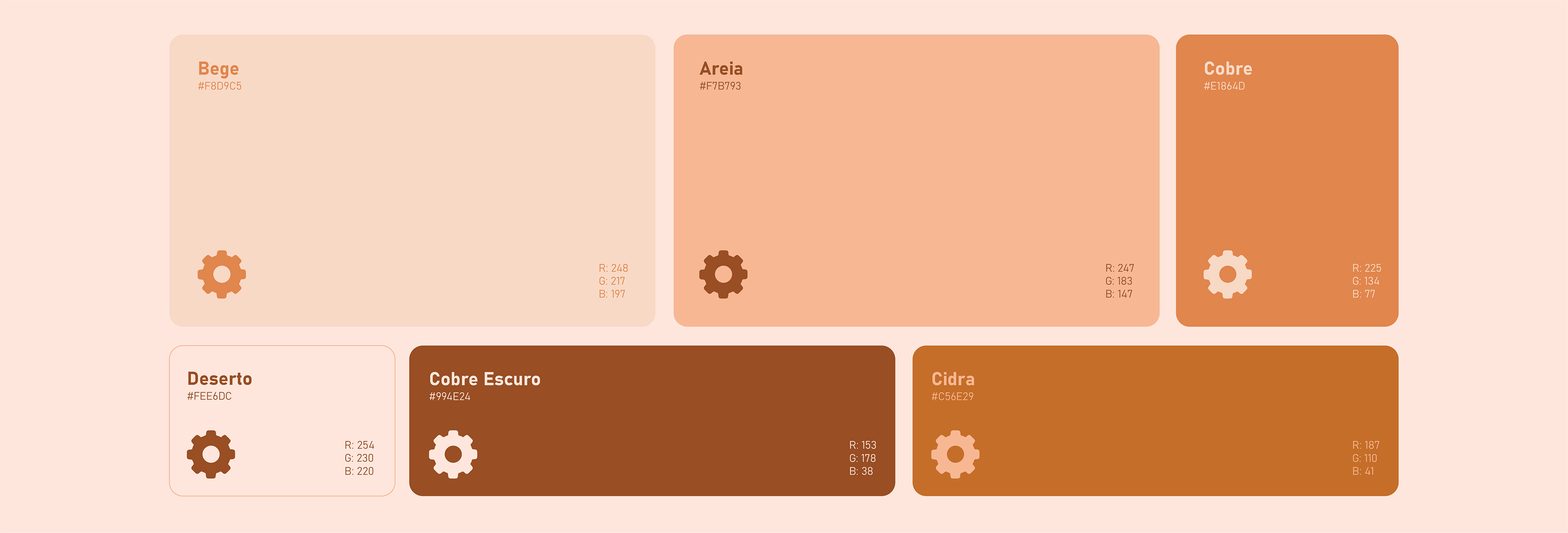 The design of the project is inspired by Clean Design, incorporating a calm vibe that evokes the seriousness and subtlety of the desert. The brand's symbol is the gear, which indicates adjustments, and using warm but soft desert colors, it highlights the brand with all its sophistication. The project uses two typographies: Stretch Pro for highlighted titles and Bahnschrift for other texts.