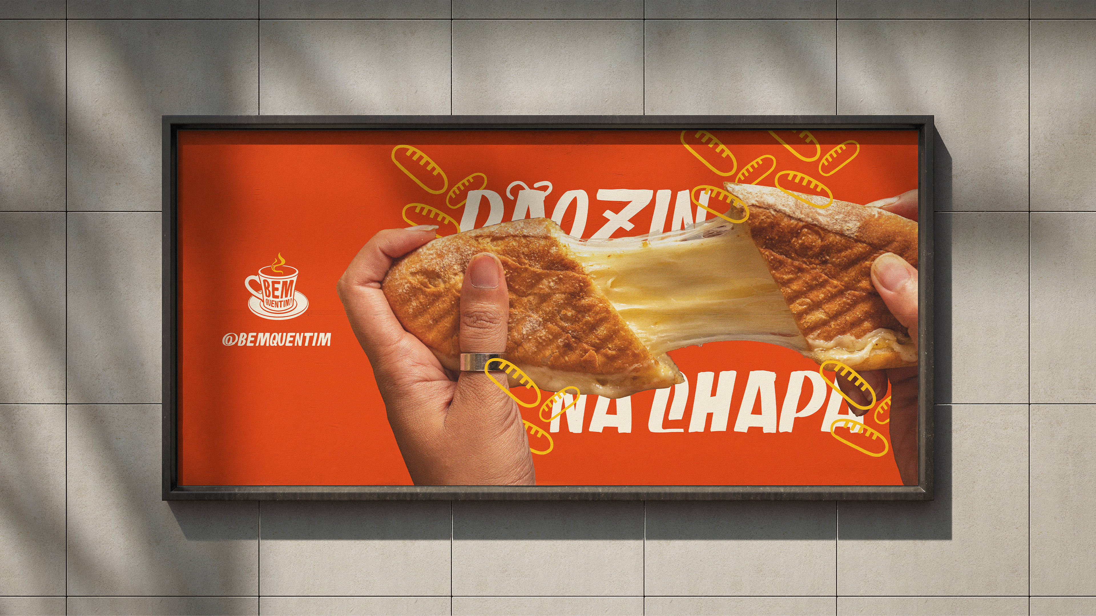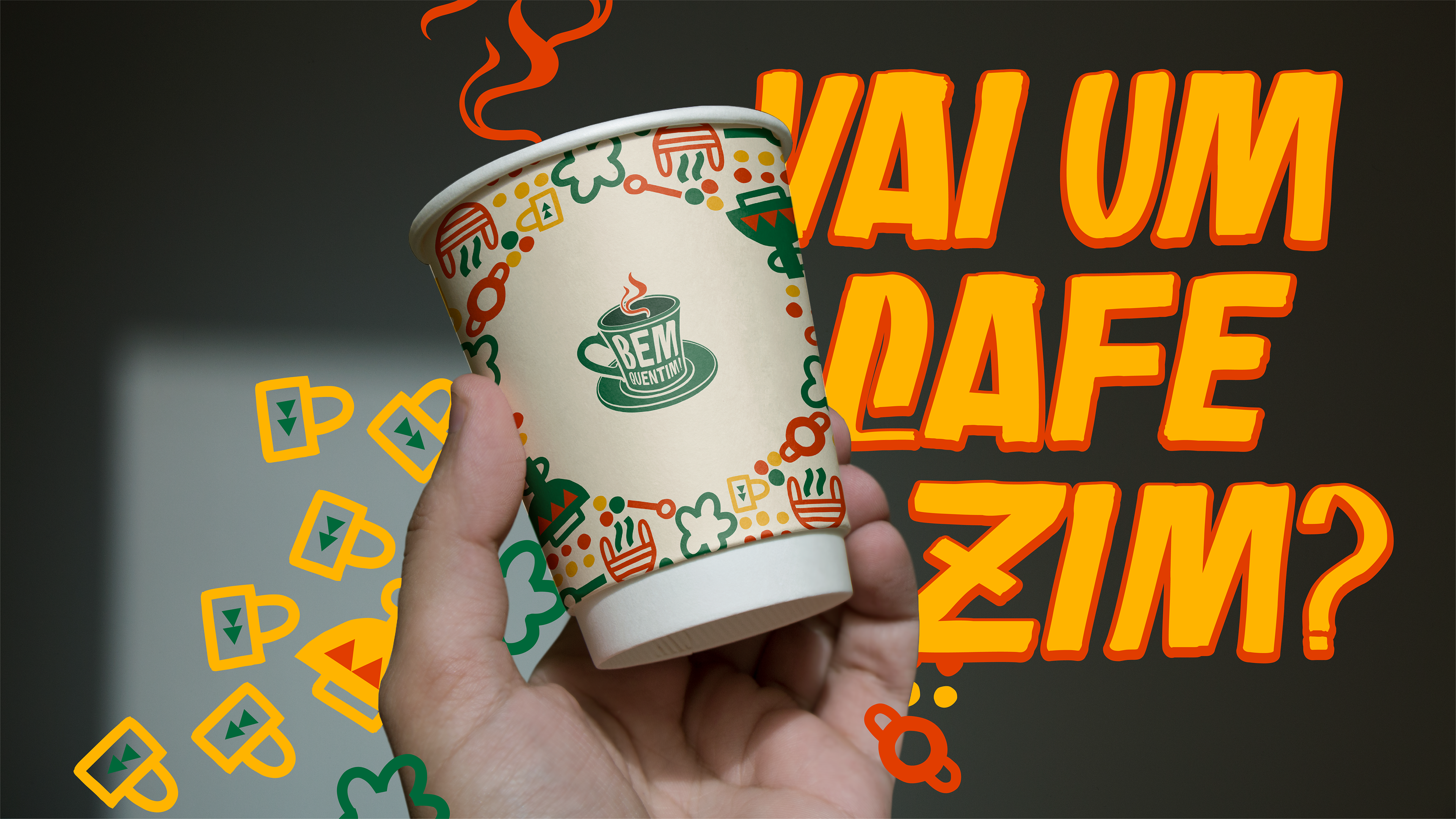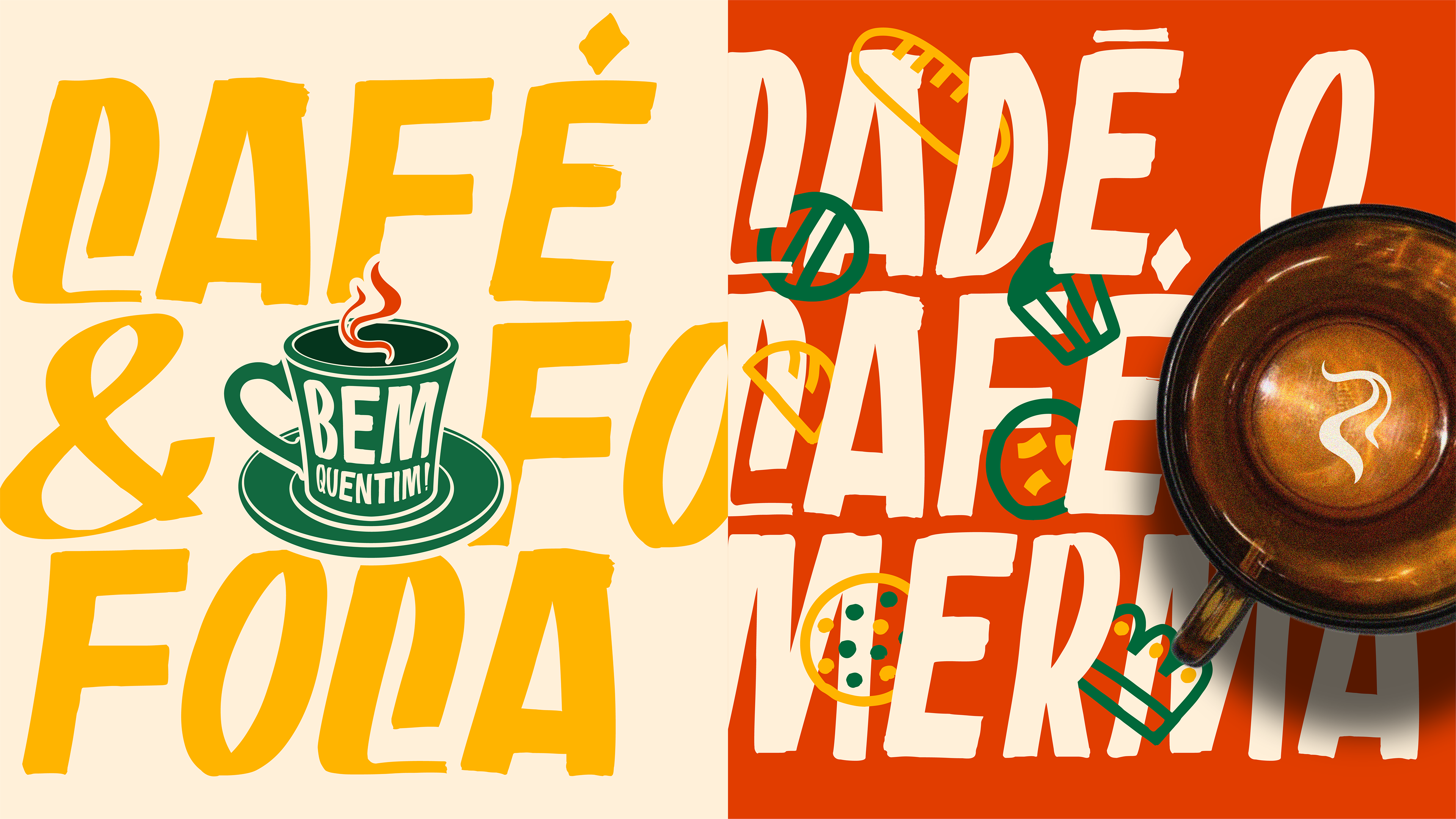 A Bem Quentim é uma cafeteria nordestina localizada em Eusébio, no Ceará, que nasceu com o propósito de aquecer não só o corpo com um café fresquinho, mas também a alma com afeto, cultura e memória. Seu nome traduz exatamente a experiência que oferece: aconchego, tradição e aquele café passado na hora, servido com carinho e sotaque. A identidade visual é vibrante e cheia de personalidade, inspirada nas cores quentes e terrosas do Nordeste — como o verde da vegetação, o amarelo do sol e o vermelho das panelas de barro — unidas em grafismos e padrões que remetem às festas populares, utensílios de cozinha e elementos da culinária regional. A tipografia combina a espontaneidade da fala popular com o cuidado artesanal do design, reforçando a proposta de valorizar o cotidiano simples, mas cheio de significados. O slogan “Meu povo, o café tá pronto!” convida a entrar, partilhar histórias e celebrar as raízes. Na Bem Quentim, cada xícara é uma homenagem à cultura nordestina e ao calor humano que move a região.