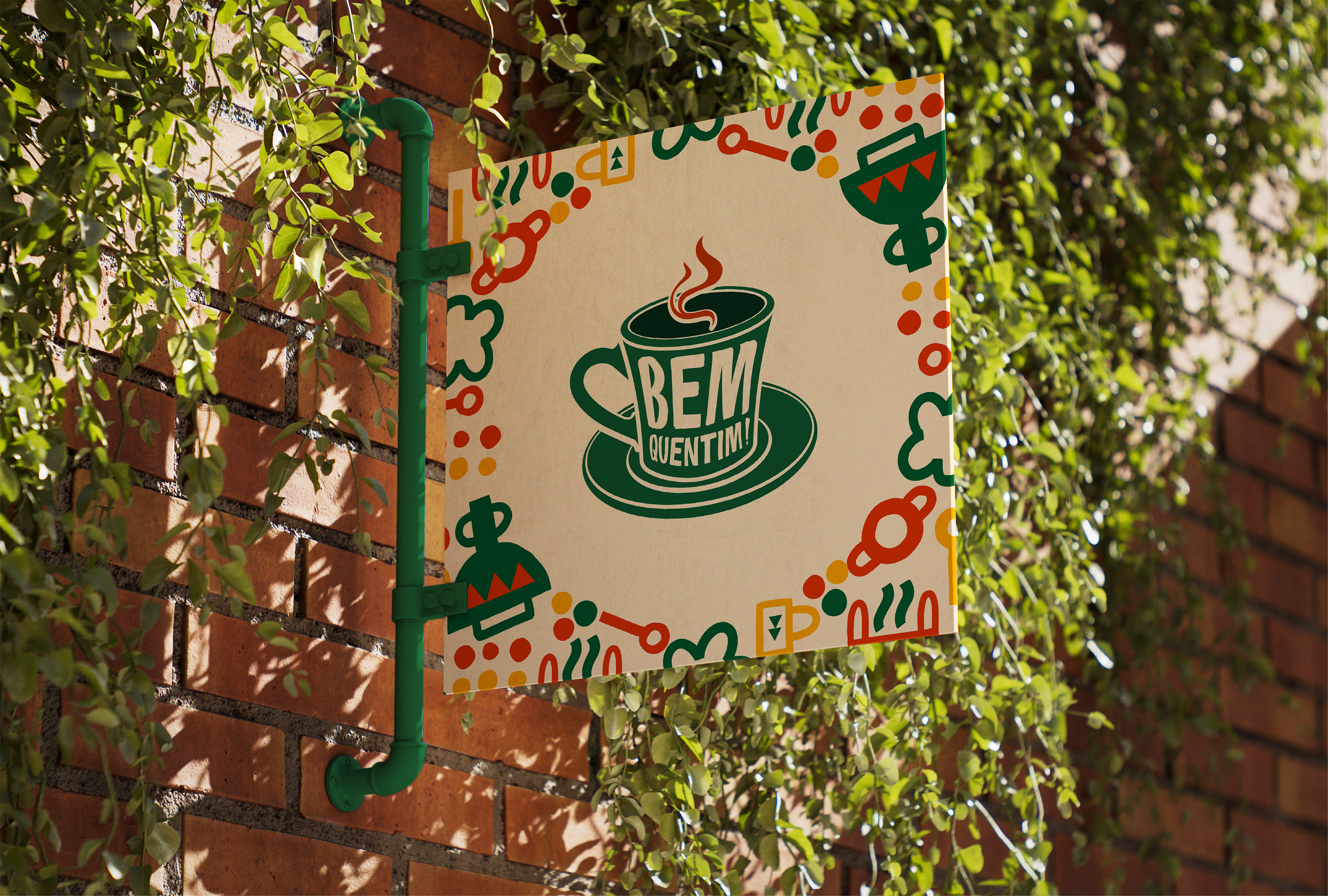 Bem Quentim is a Northeastern coffee shop located in Eusébio, Ceará, which was founded with the purpose of warming not only the body with fresh coffee, but also the soul with affection, culture and memories. Its name accurately conveys the experience it offers: comfort, tradition and freshly brewed coffee, served with care and a touch of style. The visual identity is vibrant and full of personality, inspired by the warm, earthy colors of the Northeast — such as the green of the vegetation, the yellow of the sun and the red of the clay pots — combined in graphics and patterns that refer to popular festivals, kitchen utensils and elements of regional cuisine. The typography combines the spontaneity of popular speech with the artisanal care of design, reinforcing the proposal to value simple, yet meaningful, everyday life. The slogan “My people, the coffee is ready!” invites you to come in, share stories and celebrate your roots. At Bem Quentim, each cup is a tribute to Northeastern culture and the human warmth that moves the region.